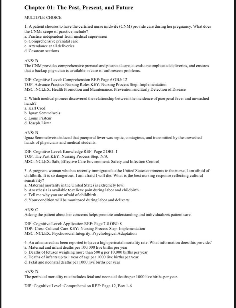 This Maternity and Pediatric Nursing test bank provides a comprehensive collection of exam-focused questions designed to help nursing students develop foundational knowledge in maternity, newborn, and pediatric nursing care.
