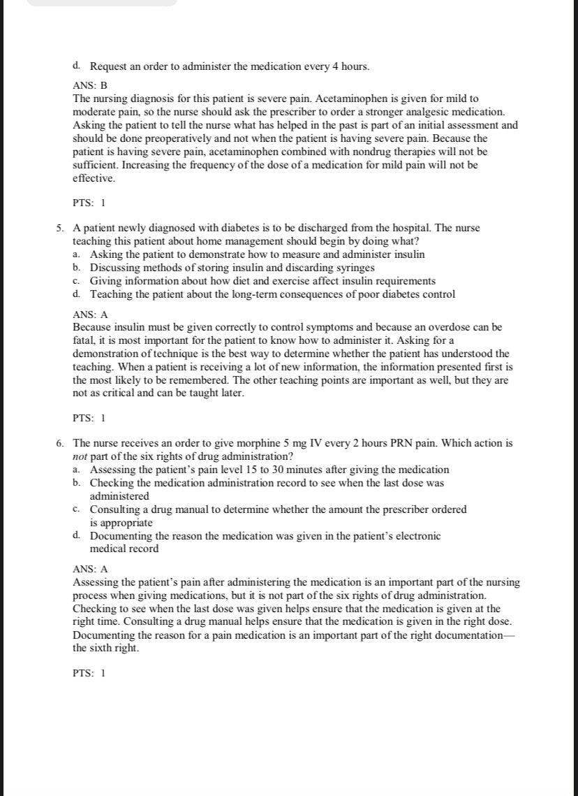 Case-based questions focused on medication administration, safety, and nursing responsibilities